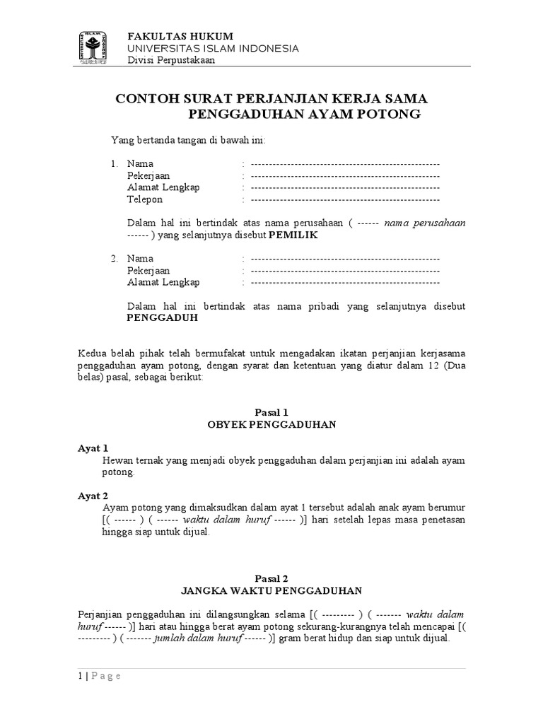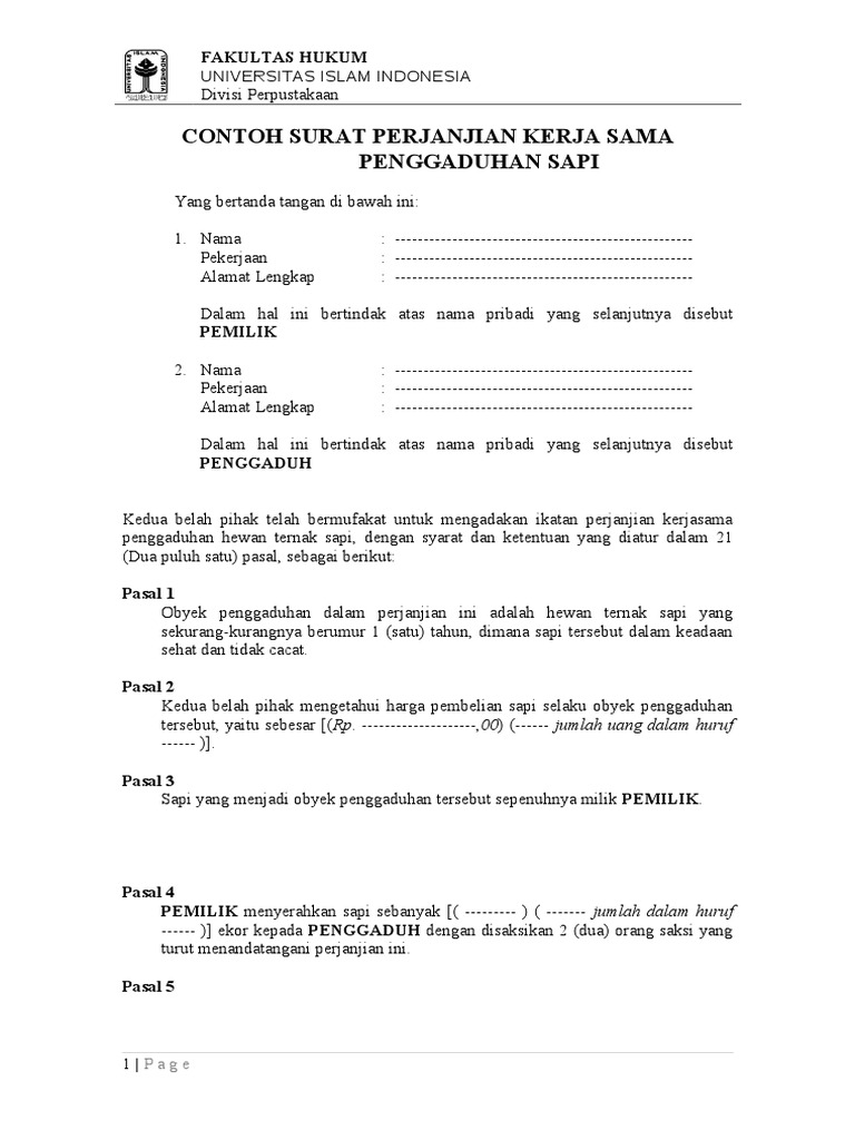 Contoh Surat Perjanjian Kerjasama Dalam Bidang Penggaduhan Sapi Fh Uii Pdf