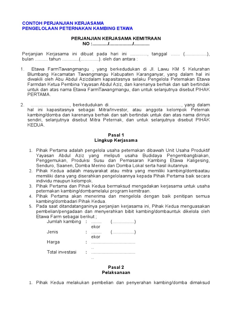 Perjanjian Kerjasama Kambing Pdf