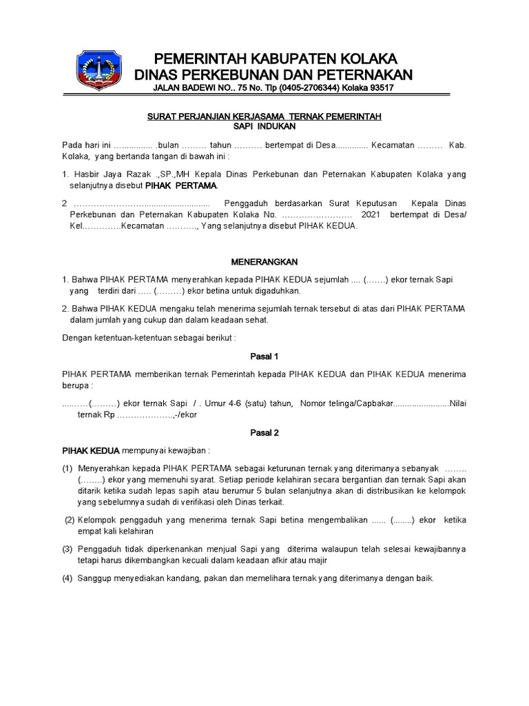 Surat Perjanjian Kerjasama Penggaduhan Kambing Pdf