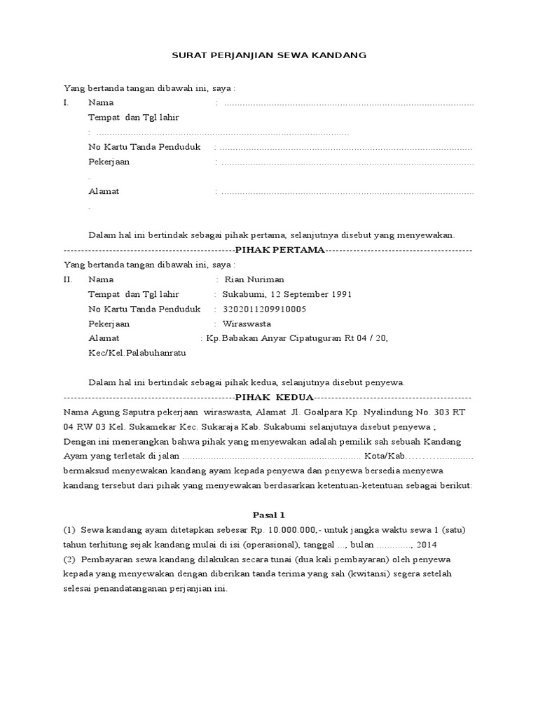 Contoh Surat Perjanjian Kerjasama Usaha Ternak Ayam Asriportal Com